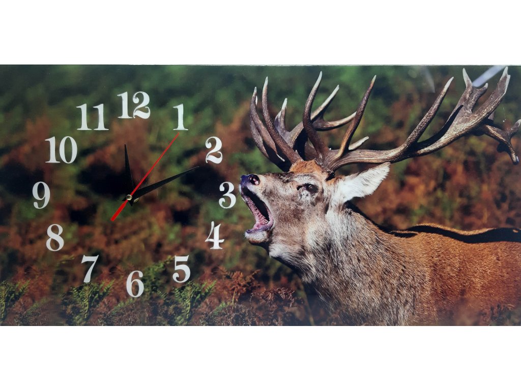 Nástenné hodiny s motívom Jeleň ručiaci sú vyrobené z 3 mm plexiskla, fotografia je aplikovaná tlačou, hrany hodín sú upravené laserom, ktorý zaručuje vysoký lesk hrán plexiskla. Strojček v hodinách je na jednu batériu typu AA, ktorá nie je súčasťou balenia. Hmotnosť hodín je 400 g.