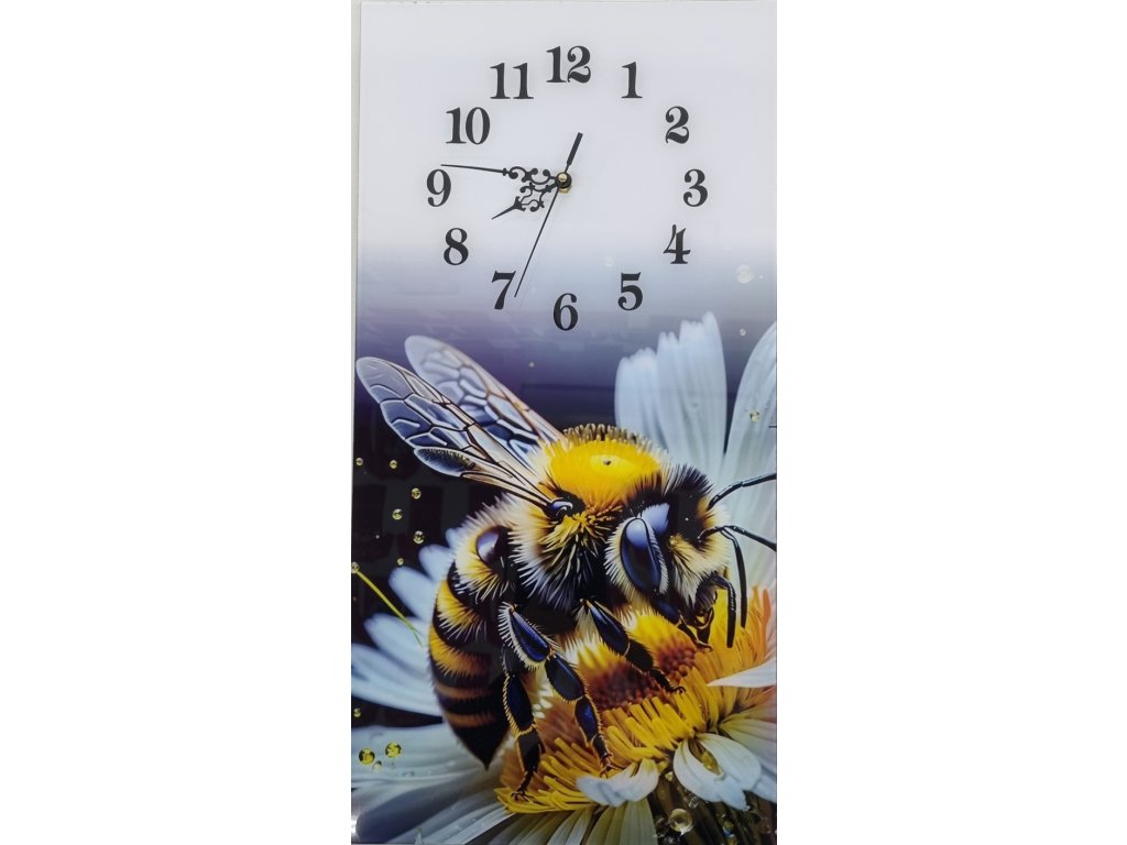 Nástenné hodiny s rozmerom 30 × 60 cm a motívom včely sú výrazným a zároveň elegantným doplnkom interiéru, ktorý v sebe spája praktickú funkciu s dekoratívnym vzhľadom. Motív včely symbolizuje prírodu, usilovnosť a harmóniu a dodáva priestoru príjemnú, pozitívnu atmosféru. Hodiny sú vyrobené z kvalitného plexiskla, ktoré je ľahké, pevné a odolné voči poškodeniu, pričom zároveň umožňuje verné zobrazenie farieb a detailov motívu. Vďaka podlhovastému formátu pôsobia moderne a dobre vyniknú na väčšej stene, kde sa stanú prirodzeným vizuálnym prvkom miestnosti. Prehľadný ciferník zabezpečuje dobrú čitateľnosť času aj z väčšej vzdialenosti.