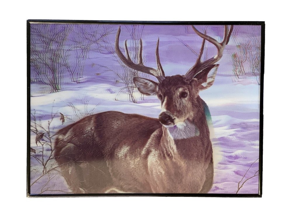 Obraz na stenu s dizajnom 3D/5D Jeleň . Vhodný ako bytová dekorácia do každej izby. Jedná sa o obraz s výškou 29 cm a šírkou 39 cm. Pri pohľade z rôznych uhlov sa obsah tohto obrazu "pohybuje". Na zadnej strane obrazu sa nachádza výrez, ktorý slúži na zachytenie obrazu za pomoci úchytky.