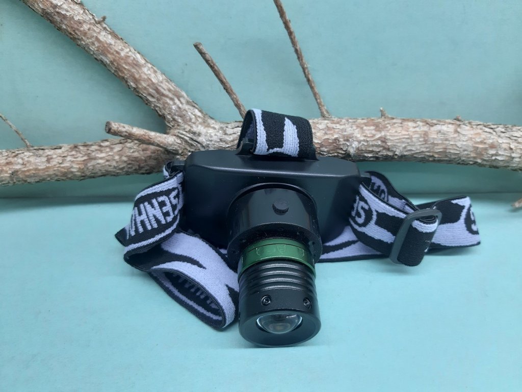 Baterka čelová s pružnými popruhmi má nastaviteľný sklon čelovky, je nárazuvzdorná a vodeodolná. Čelovka má nastaviteľný ZOOM a vlastný akumulátor. Svietivosť čelovky je 120 LM. Má 3 stupne svietivosti: silné, slabé a blikanie. Dodáva sa spolu s nabíjačkou a krabičkou.
