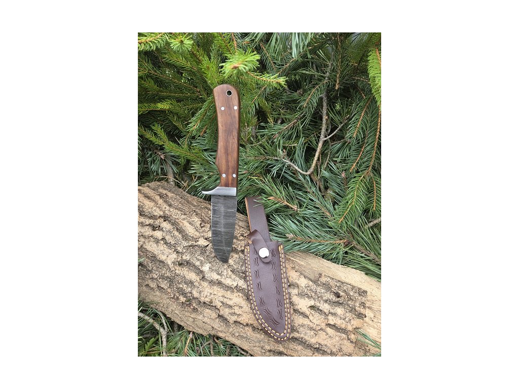 Tento ručne vyrábaný poľovnícky nôž z damaskovej ocele pochádza z Pakistanu, krajiny s dlhou tradíciou spracovania vrstvených ocelí. Kombinuje damaskovú čepeľ, rukoväť z olivového dreva a púzdro v cene. Je ideálny pre poľovníkov, zberateľov aj nadšencov remeselnej ocele.