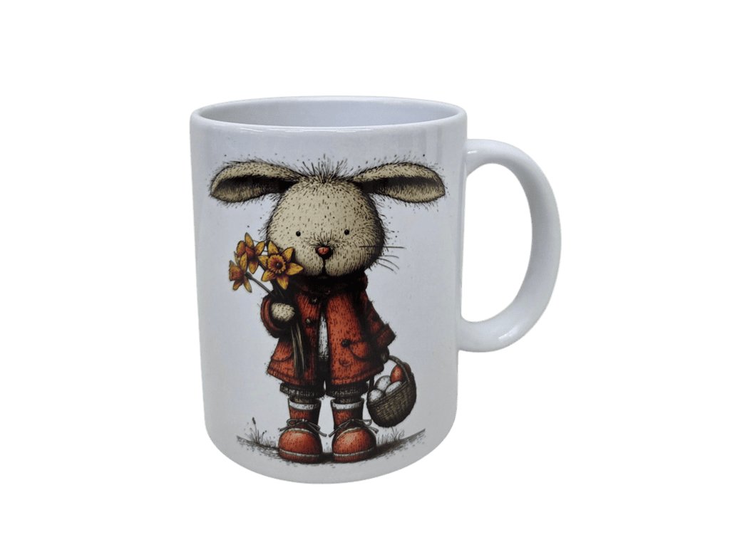 Originálny keramický hrnček s roztomilým motívom veľkonočného zajačika je ideálnym doplnkom pre jarné dni a sviatočné chvíle pohody. Nežná ilustrácia zajačika v kabátiku s kytičkou kvetov a košíkom vajíčok vytvára milú a veselú atmosféru, ktorá poteší deti aj dospelých.