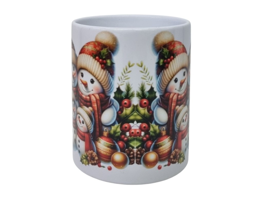 Hrnček keramický s vianočným motívom Rodinka snehuliakov