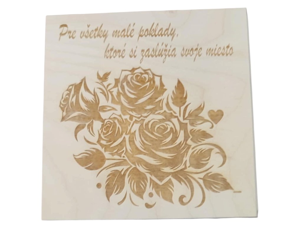 „Pre všetky malé poklady, ktoré si zaslúžia svoje miesto“ – jemný odkaz, ktorý krabičke dodáva osobitý citový rozmer a robí z nej nielen praktický, ale aj symbolický predmet.