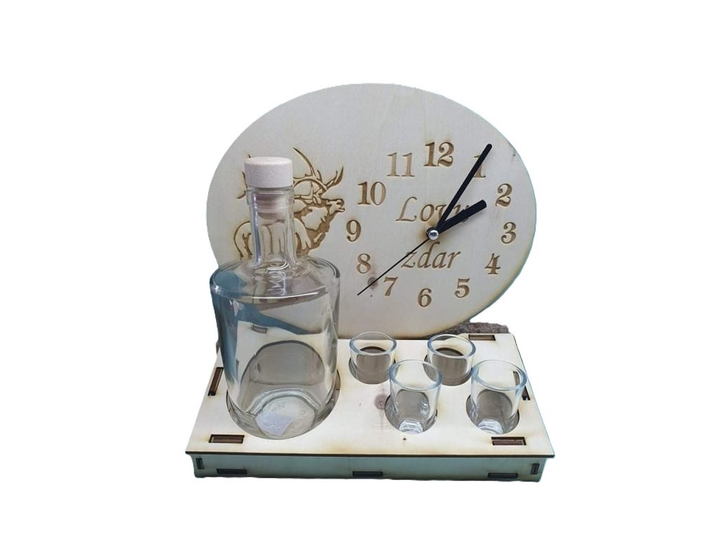 Hodiny s fľašou a 4 pohárikmi Jeleň