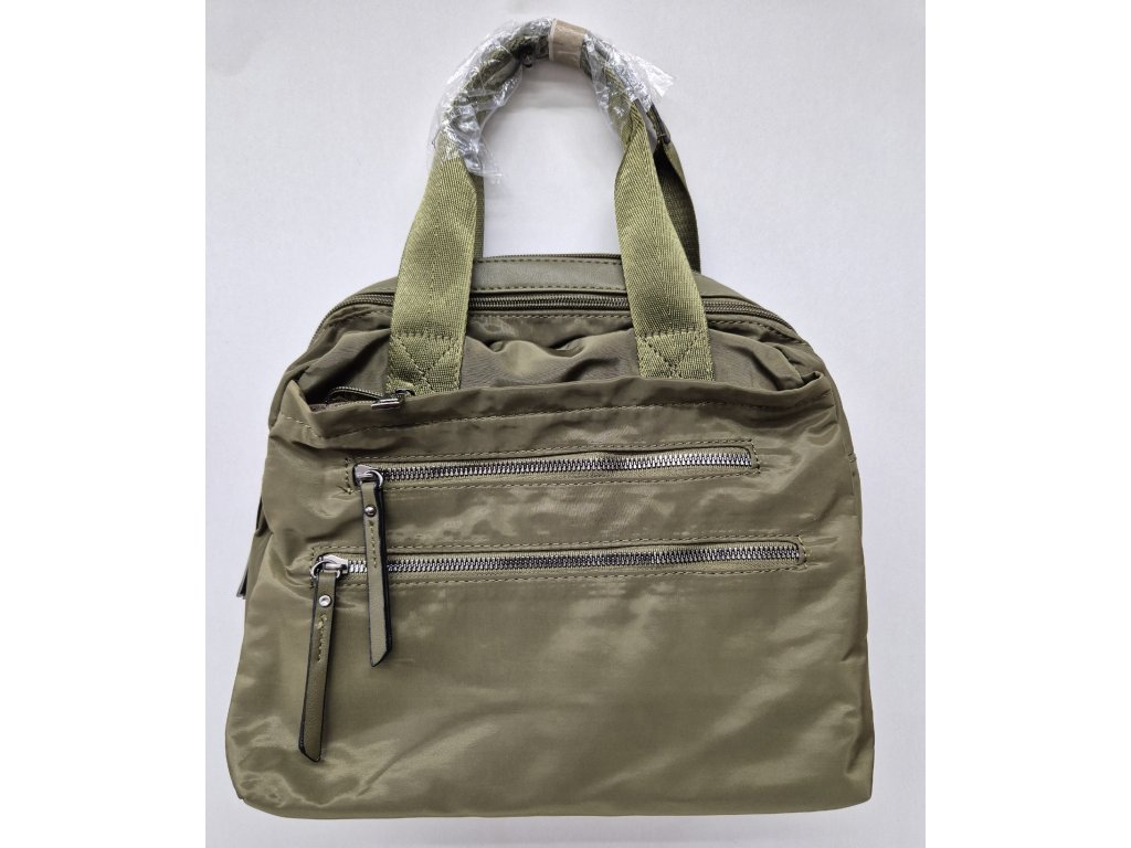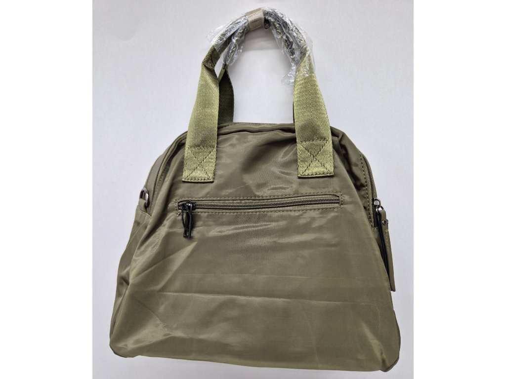 Dámska taška v zelenej farbe . Má nastaviteľný popruh na nosenie cez plece, ktorý sa dá odopnúť, dá sa nosiť aj v ruke. Má hlavnú komoru 4 vrecká na zips a dve bočné vrecká.
