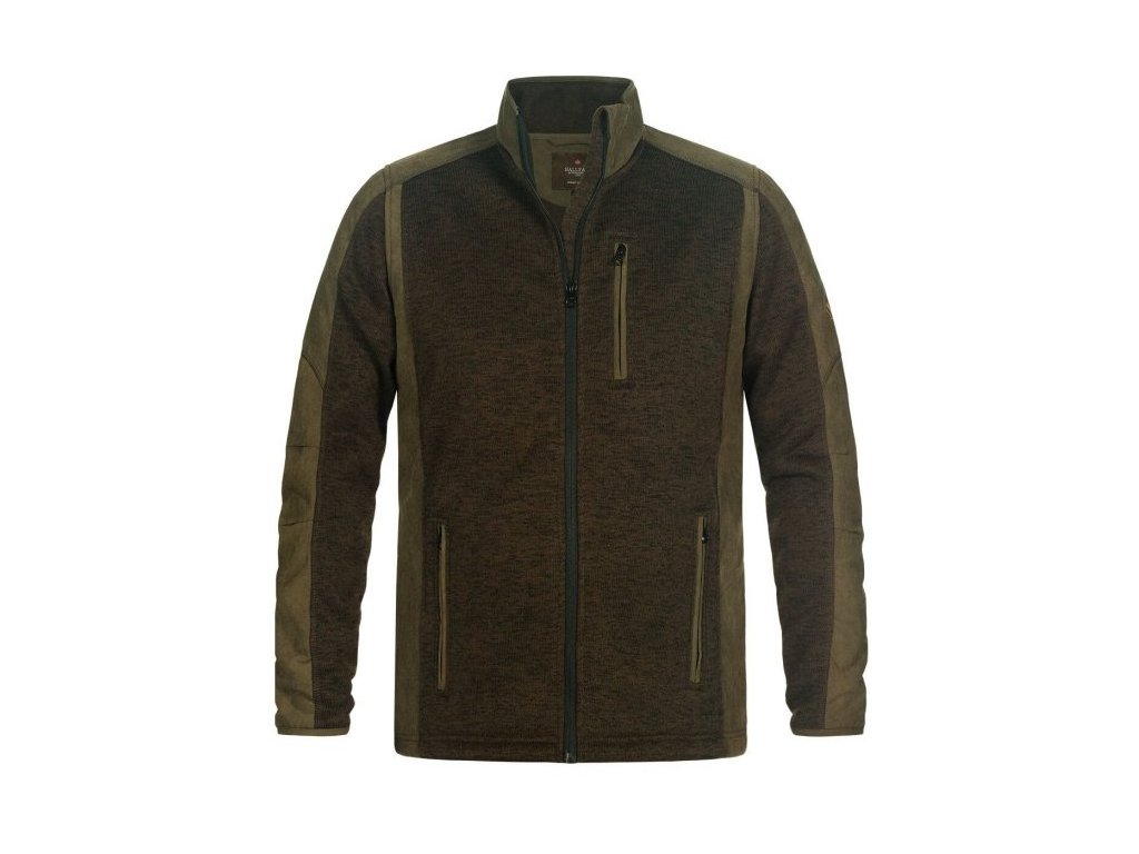 Pánska poľovnická mikina Jonáš je vyrobená z dvoch typov pleteniny - tmavšia žíhana a jemnejšia olivová. Oba materiály sú z vonkajšej strany počesané, takže  pripomínajú  fleece. Kombinácia týchto moderných a  príjemných materiálov spolu so zaujmavým strihom dávajú mikine exkluzívny vzhľad. Mikina Jonáš je tepla napriek tomu že nie je objemná. Na rukávoch v oblasti lakťa sú moderné záševky. Dolný okraj mikiny sa da stiahnuť  . Zips je po celej dĺžke mikiny podšitý . Mikina má 3 vonkajšie vrecká  a 1 jedno vnútorné na zips. Farba: tmavo zelená/ olivová materiál: 100% polyester.