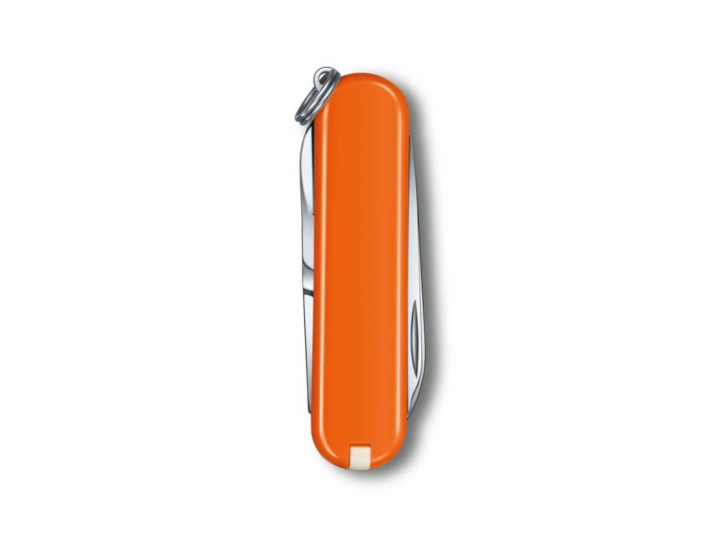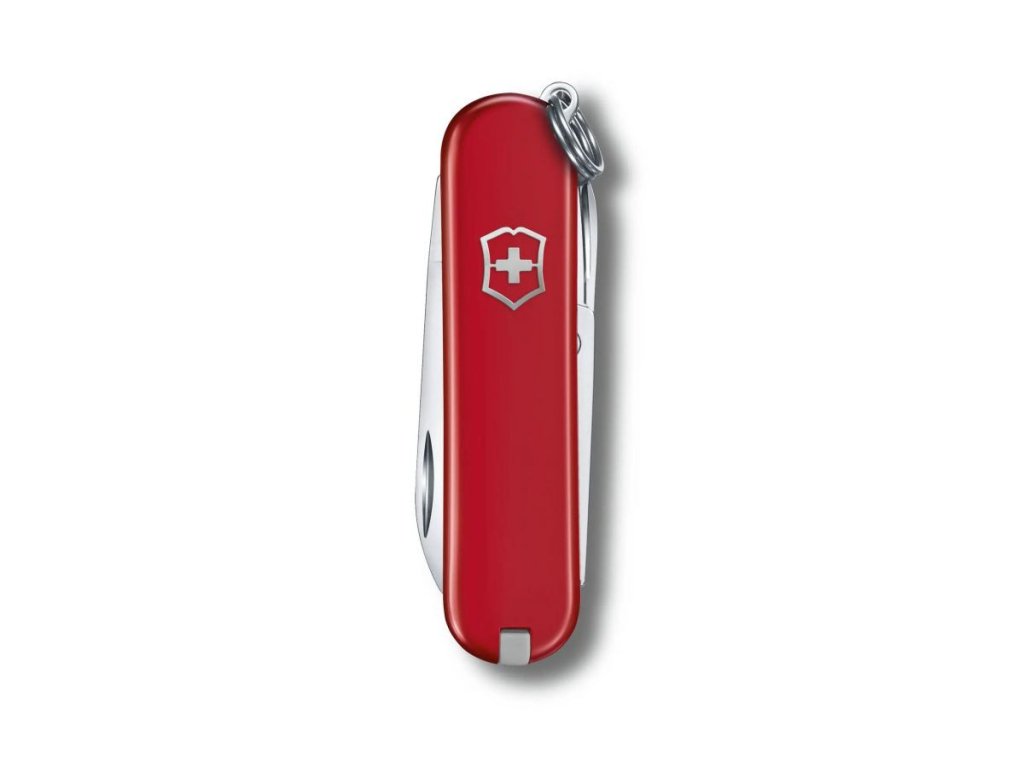 Švajčiarsky vreckový nôž veľkosti 58 mm vhodný ako prívesok na kľúče. Obsahuje 7 funkcií.
