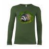 Priliehavé pánske tričko s poľovníckym motívom jazvec s dlhým rukávom z hladkého úpletu, módny úzky lem na krku vo farbe trička, s motívom na prednej strane.