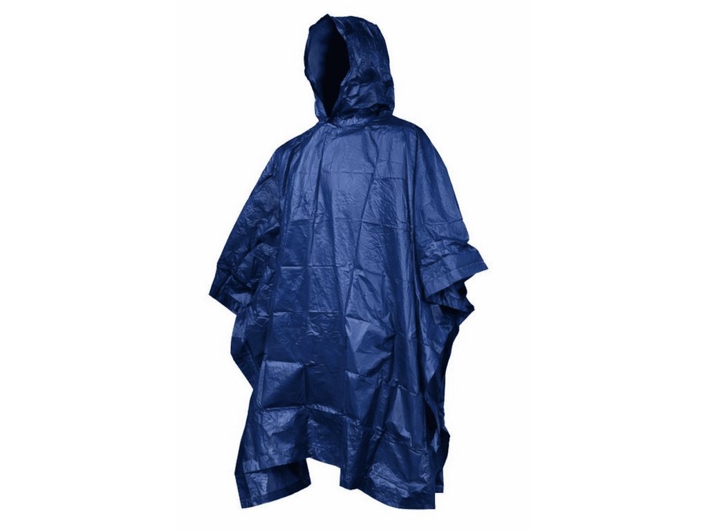 Nepremokavé pončo v tmavomodrej farbe s rozmermi približne 127–132 × 203 cm poskytuje dostatočne veľké krytie celého tela aj batohu či kabelky, vďaka čomu spoľahlivo chráni pred dažďom a vetrom. Materiál je pružný, ľahko sa skladá a nezaberá veľa miesta v batohu alebo taške. Pončo je vybavené kapucňou a voľným strihom, ktorý neobmedzuje pohyb a umožňuje pohodlné nosenie aj cez hrubšie oblečenie.