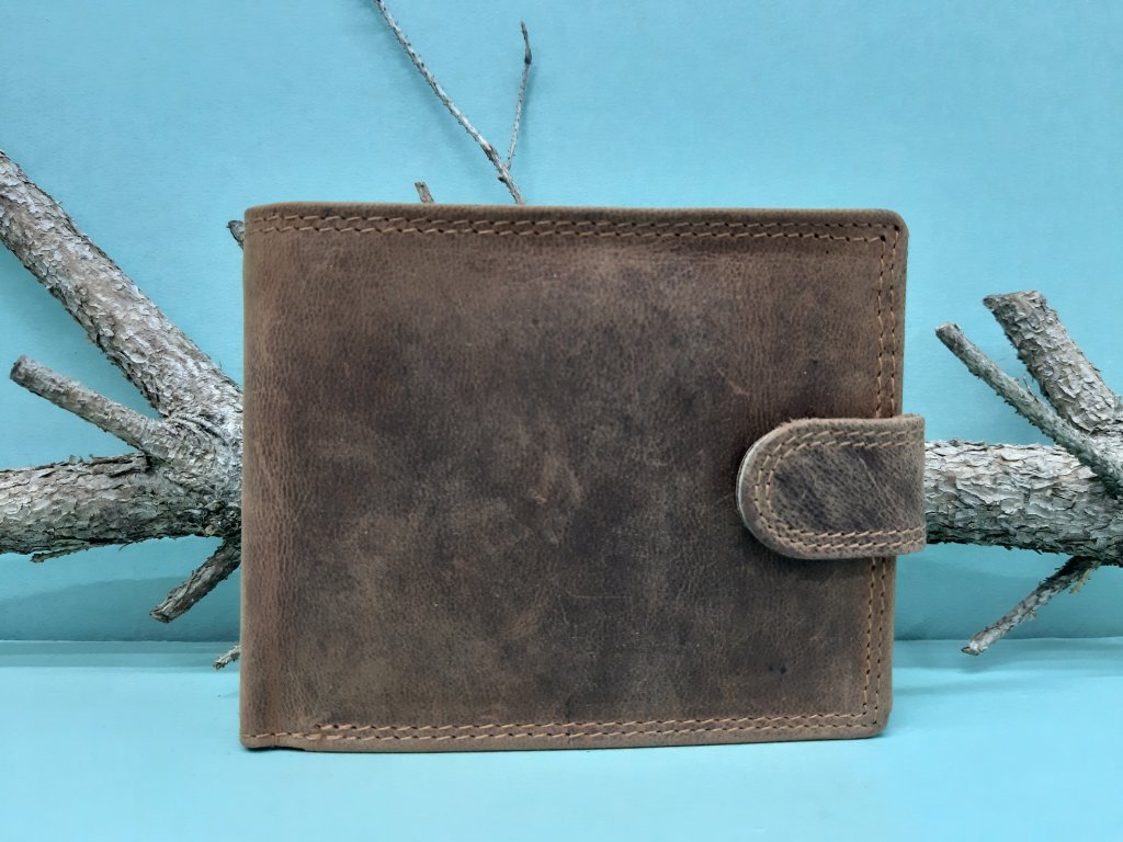 Pánska kožená peňaženka vyrobená z pravej prírodnej kože prvotriednej kvality. Koža je na dotyk veľmi príjemná a je veľmi kvalitne spracovaná. s bočným zapínaním na cvok. Má 9 priehradiek na karty, 3 priehľadné priehradky na fotky alebo doklady, 1 veľký mincovník, 1 zipsový priečinok a 2 priehradky na bankovky. Rozmery: dĺžka 12,5 cm, výška 10 cm, šírka 3,5 cm.