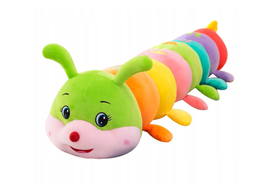 Táto mäkká a hebká húsenica je dlhá 95 cm a vyrobená z kvalitného mikroplyšu, ktorý je príjemný na dotyk. Je plná živých farieb, ktoré upútajú pozornosť každého dieťaťa a podporujú jeho zmyslové vnímanie.