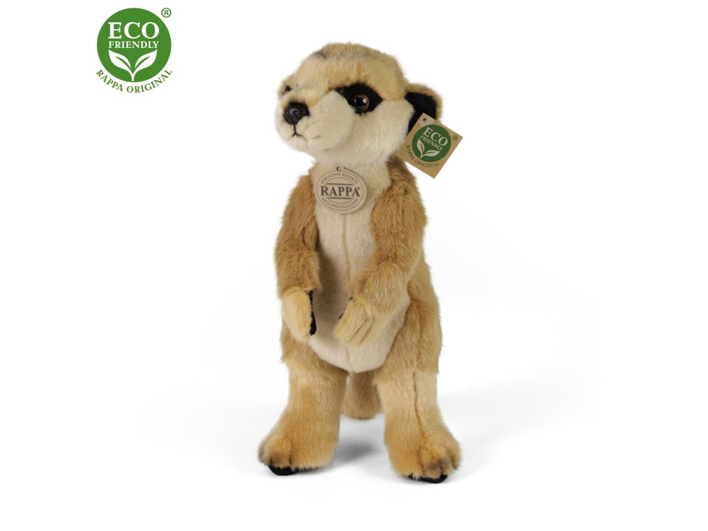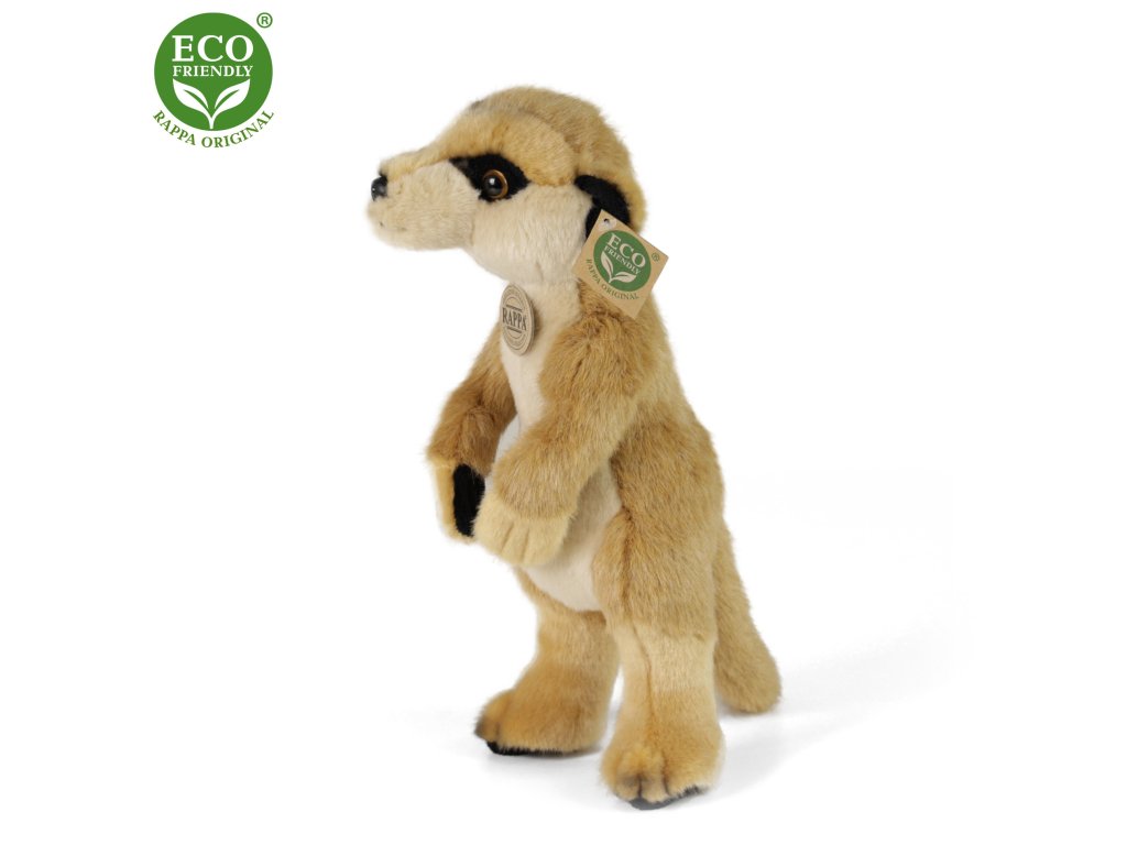 Krásna eco-friendly plyšová Surikata vo veľkosti 23 cm je vyrobená z vysoko kvalitného plyšu. Výplň plyšovej hračky je vyrobená z recyklovaných PET fliaš. Tento materiál je úplne bezpečný, na dotyk nerozoznateľný od štandardnej výplne a plne atestovaný pre bezpečnosť aj tých najmenších.