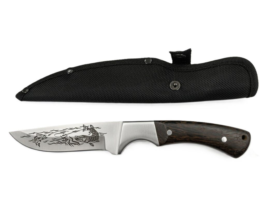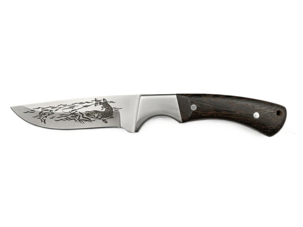 Tento nôž predstavuje ideálnu voľbu pre každého rybára a milovníka prírody, ktorý hľadá spojenie funkčnosti a tematického dizajnu. Dominantným prvkom celého noža je precízne spracované gravírovanie na čepeli s motívom rybačky, ktoré zobrazuje dravú rybu vyskakujúcu z vody po návnade. Vďaka celkovej dĺžke 24,5 cm a kompaktnej 10 cm čepeli ide o veľmi obratný nástroj, ktorý sa skvele hodí na spracovanie úlovkov, prípravu dreva na oheň alebo bežné kutilské úlohy v kempe.