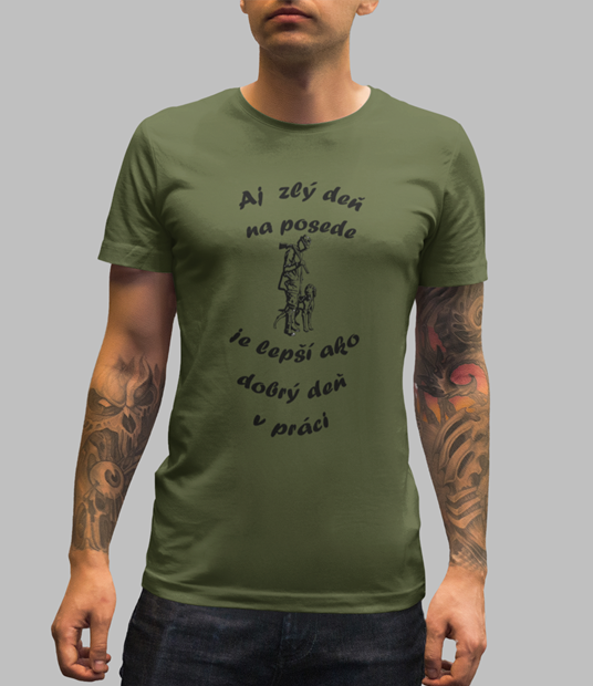 Tričko pánske s poľovníckym motívom Aj zlý deň na posede je lepší ako dobrý deň v práci