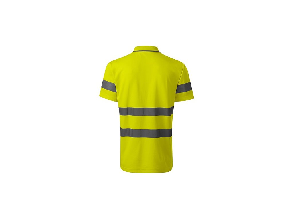 Unisex polokošela v žltom prevedení s bočnými švami. Limček s kontrasným prúžkom z rebrového úpletu 1:1, vpredu sú 3 gombíky na zapínanie, ramenné švy sú spevnené páskou, použité sú certifikované retroreflexné pruhy výrobcu 3M, odev je certifikovaný podľa normy EN ISO 20 471:2013 , EN ISO 13 688:2013. Veľkosť: S-3XL. Prateľné na: 40 °C. Vyrobené z 55% bavlny a 45% polyesteru.