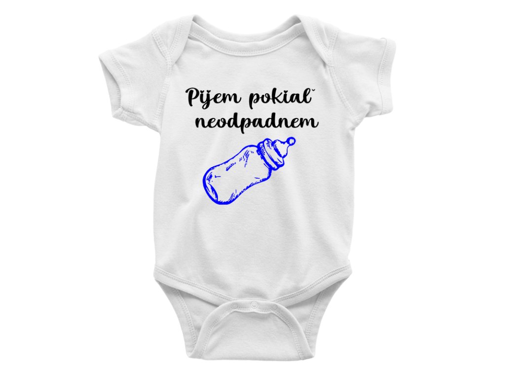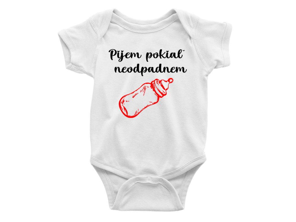 Detské bodíčko s krátkym rukávom s nápisom : Pijem pokiaľ neodpadnem. Originálne bavlnené dojčenské body s krátkym rukávom s potlačou, použité farby k potlači sú certifikované a zdravotne nezávadné. Je vyrobené z príjemného a kvalitného materiálu bavlna, v ktorom sa Vaše bábätko bude cítiť príjemne. Praktické zapínanie na cvočky na ramienku a medzi nožičkami uľahčí obliekanie a prebaľovanie. Body je pre bábätká dôležitým kúskom oblečenia, pri akomkoľvek pohybe je chrbátik bábätka stále chránený. Ošetrovanie : prať na 30°C obrátené naruby, nežehliť cez potlač, nevhodné do sušičky. Farbu motívu nám píšte do poznámky