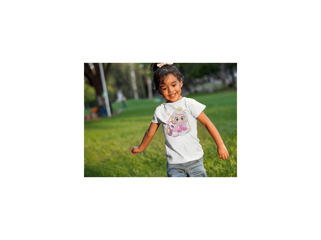 Tričko s rozprávkovým motívom Jednorožec je ideálnym oblečením pre malé milovníčky fantázie. S hmotnosťou 160g a zložením z 100% bavlny je toto tričko ľahké, priedušné a pohodlné na nosenie, čo je dôležité pre aktívne deti.