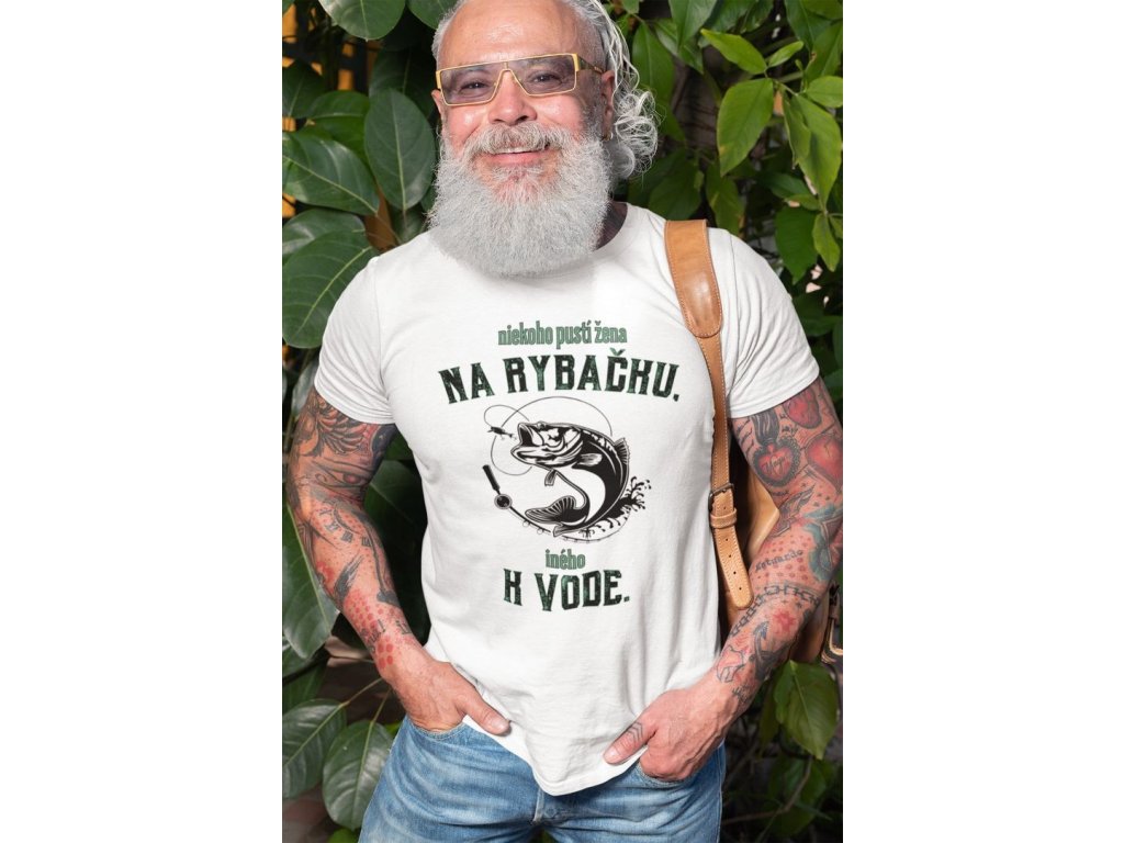 Tričko pánske s rybárskym motívom Niekoho pustí žena na rybačku, iného k vode