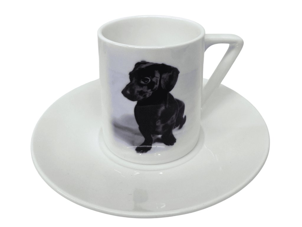 Šálka s podšálkou s potlačou Jazvečík sediaci 85 ml