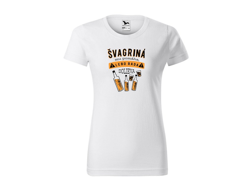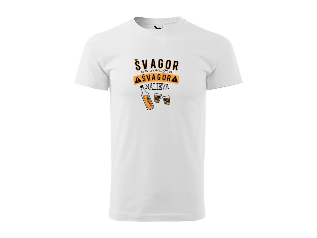 Kvalitné tričká s krátkym rukávom s potlačou Švagriná mu pomáha, lebo rada dolieva a pánske tričko Švagor sa nepýta, švagor nalieva. Sú vyrobené zo 100% bavlny, majú pohodlný strih a ľahkú váhu 160g/m2 čo zabezpečuje príjemné nosenie v akomkoľvek počasí, tričká sú vhodné na každodenné použitie.