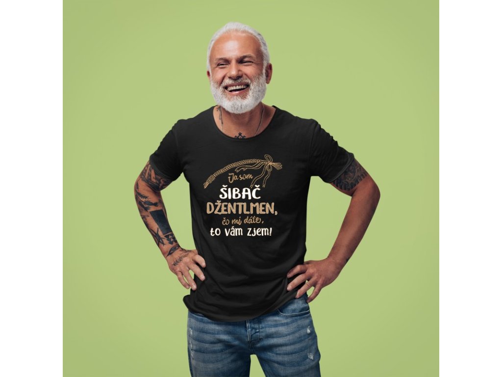 Kvalitné pánske tričko s krátkym rukávom s nápisom Ja som šibač džentlmen, čo mi dáte to Vám zjem. Je vyrobené zo 100% bavlny má pohodlný strih a ľahkú váhu 160g / m2 , čo zabezpečuje prijemné nosenie v akomkoľvek počasí , tričko je vhodné na bežné použitie .