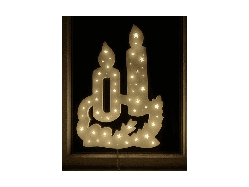 🎄 Rozžiarte svoje Vianoce krásnou závesnou dekoráciou v tvare dvoch sviečok, ktorá prinesie do vášho domova pravú sviatočnú atmosféru. Svietnik s výškou 41 cm a šírkou 27 cm svieti príjemným bielym svetlom 🌟, ktoré si môžete nastaviť podľa nálady – bez blikania, s rýchlym blikaním alebo jemným pomalým preblikávaním. Dekorácia je napájaná cez kábel na 220 V s dĺžkou 107 cm a po bokoch má praktické plastové úchyty – očká s dierkou pre jednoduché pripevnenie. Táto svetelná dekorácia je ideálna do okna alebo na stenu, kde vynikne svojím čistým dizajnom a teplým svetlom ✨. Vytvorte si doma čarovnú sviatočnú atmosféru a potešte seba aj svojich blízkych ❤️.