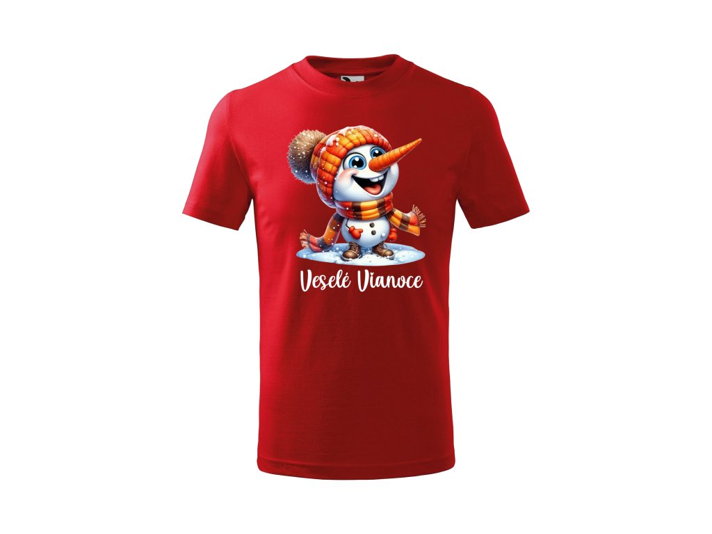 Tričko s vianočným motívom Snehuliak. S hmotnosťou 160g a zložením z 100% bavlny je toto tričko ľahké, priedušné a pohodlné na nosenie, čo je dôležité pre aktívne deti.