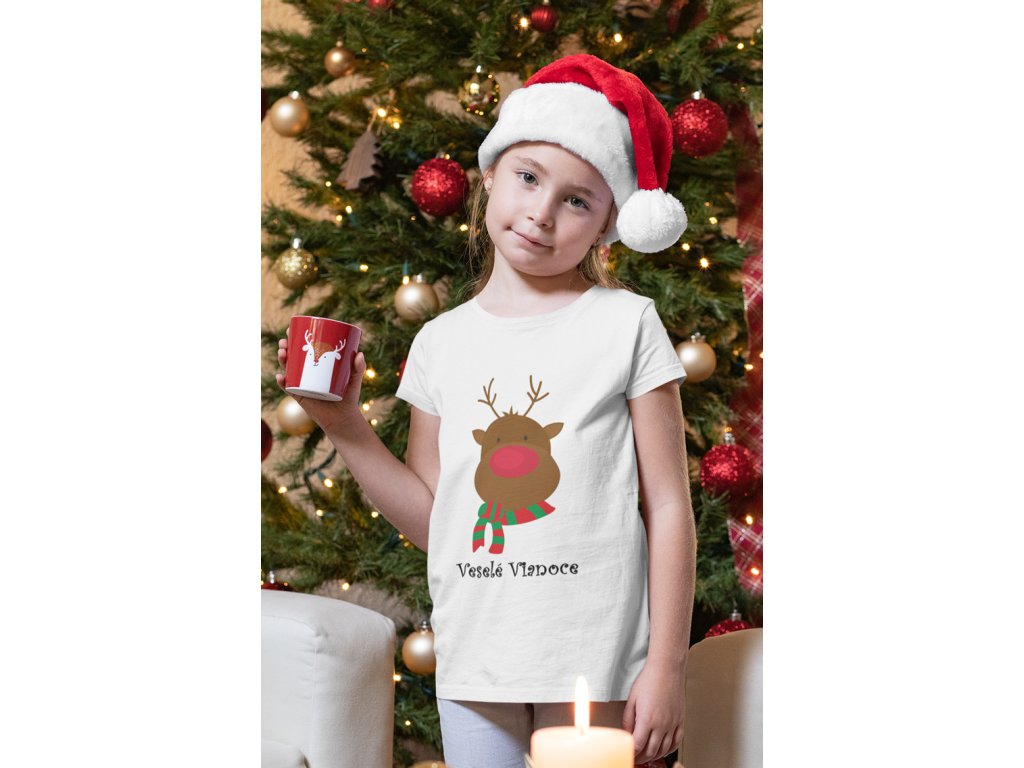 Tričko s  vianočným motívom Veselé Vianoce. S hmotnosťou 160g a zložením z 100% bavlny je toto tričko ľahké, priedušné a pohodlné na nosenie, čo je dôležité pre aktívne deti.