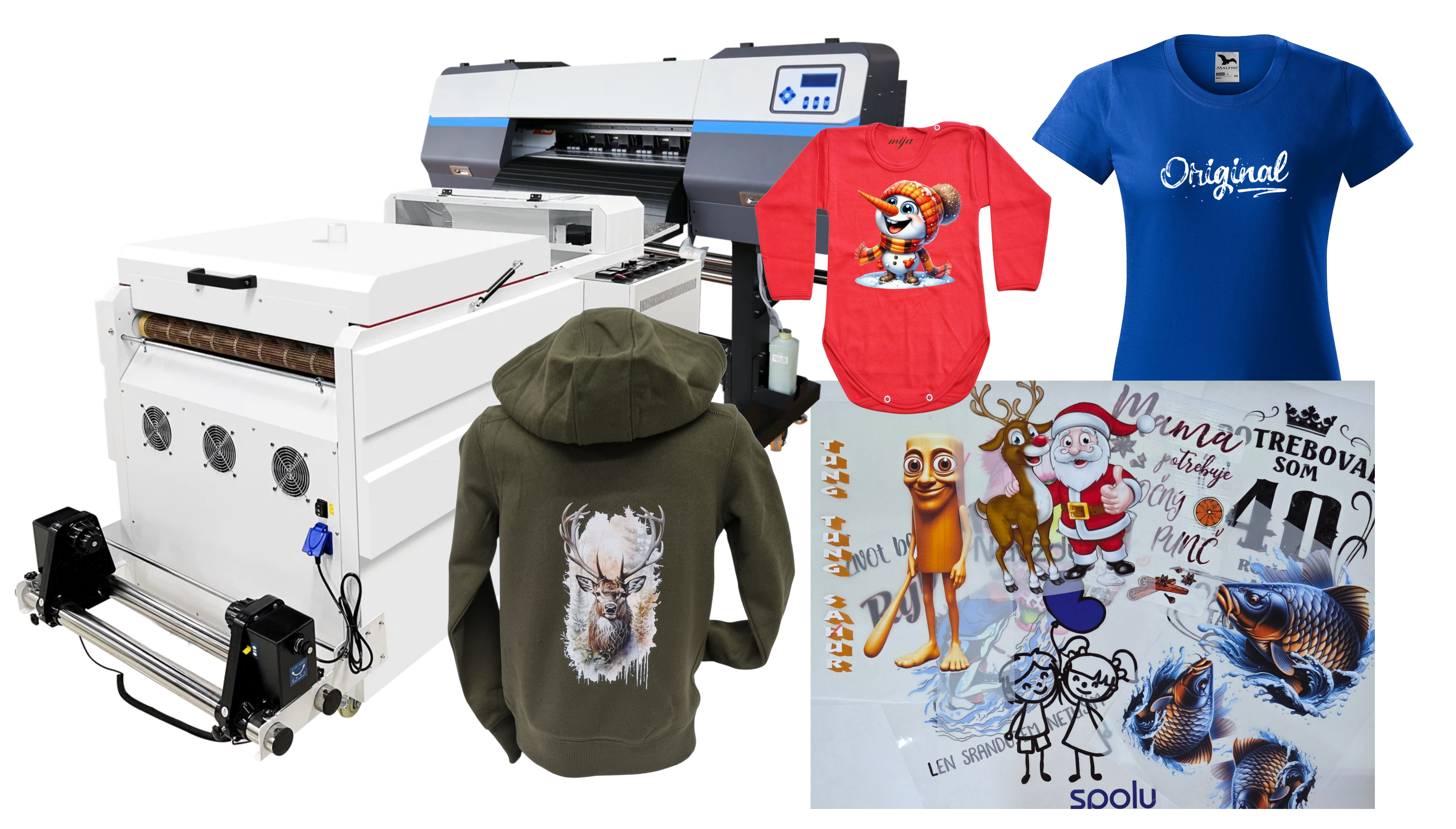- DTF (Direct to Film) – univerzálna a odolná technológia vhodná pre rôzne materiály