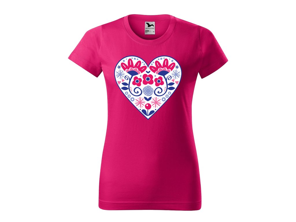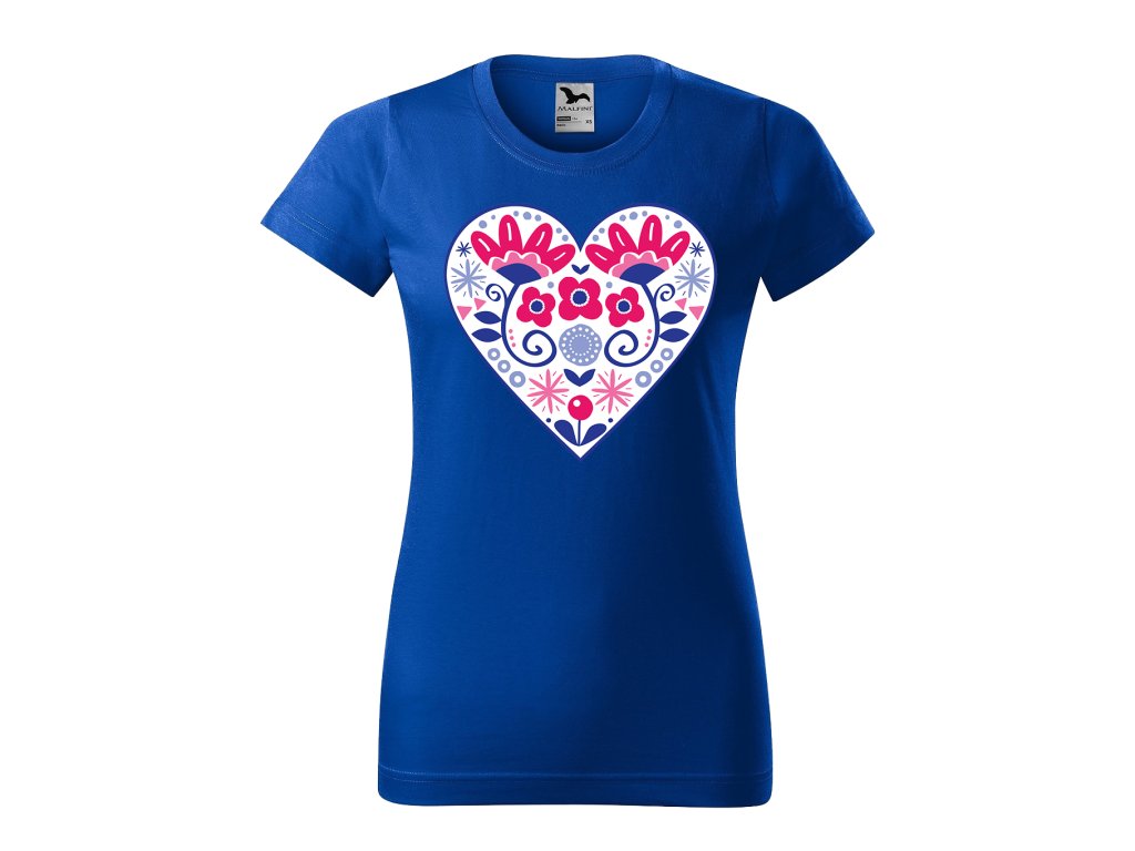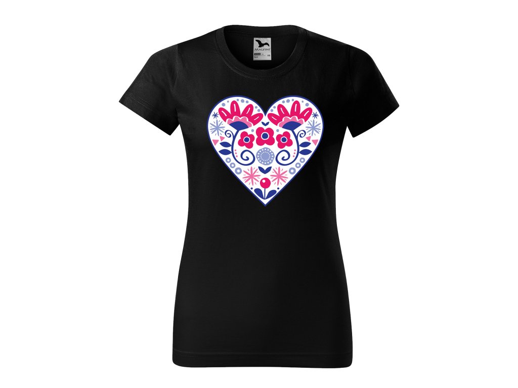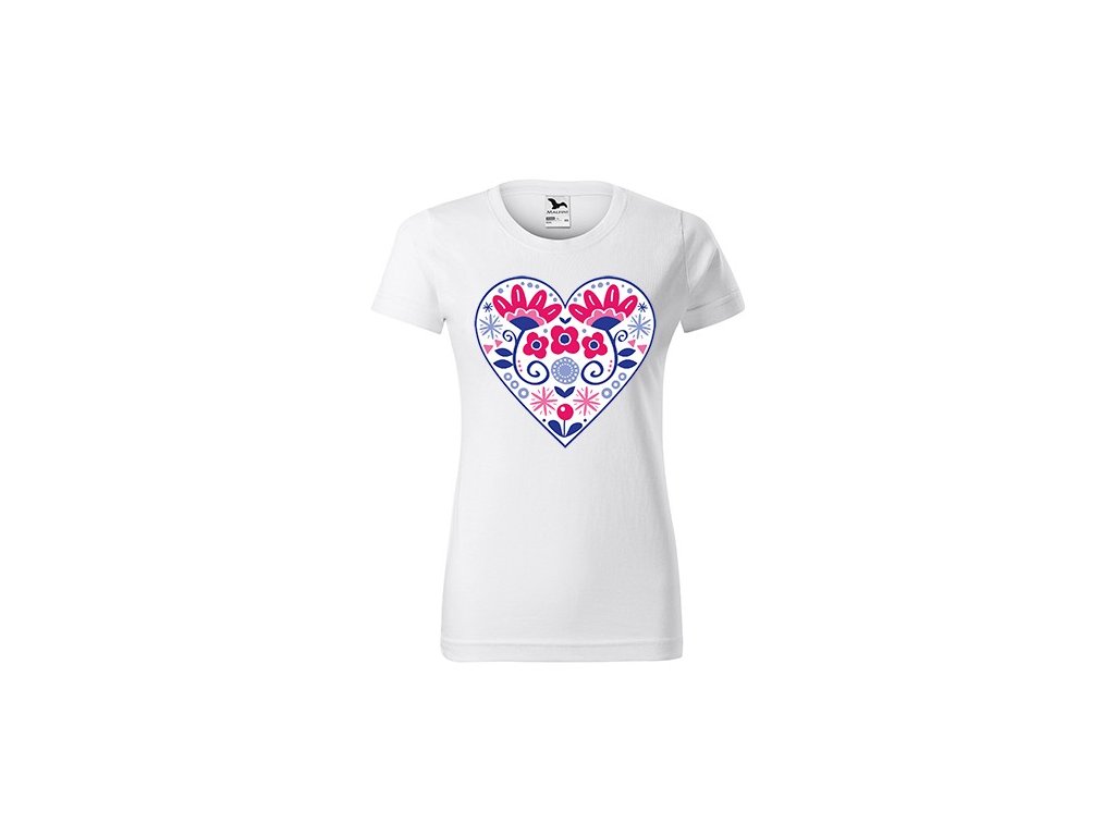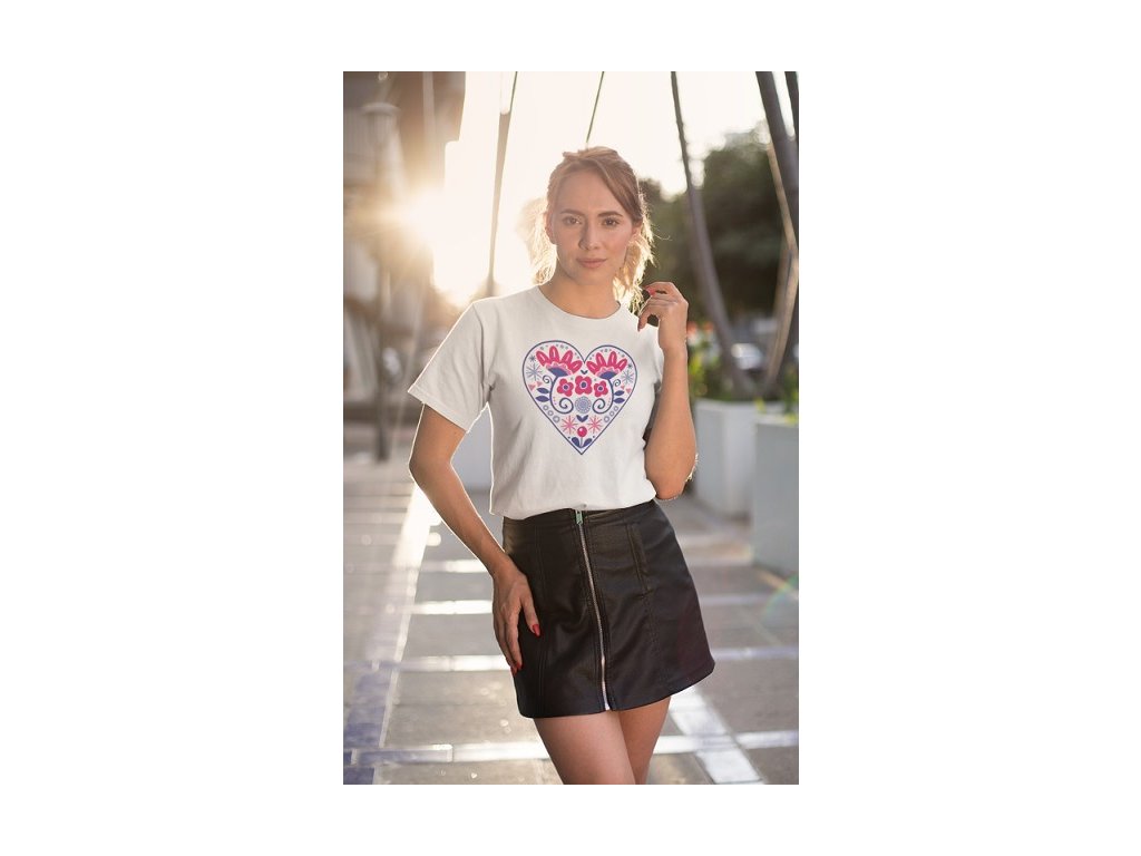Kvalitné tričko krátky rukáv s potlačou Folklórne srdce. Je ušité zo 100% bavlny príjemnej  na každodenné nosenie, má pohodlný zúžený strih a ľahkú váhu 160g/m2 čo zabezpečuje príjemné nosenie v akomkoľvek počasí.