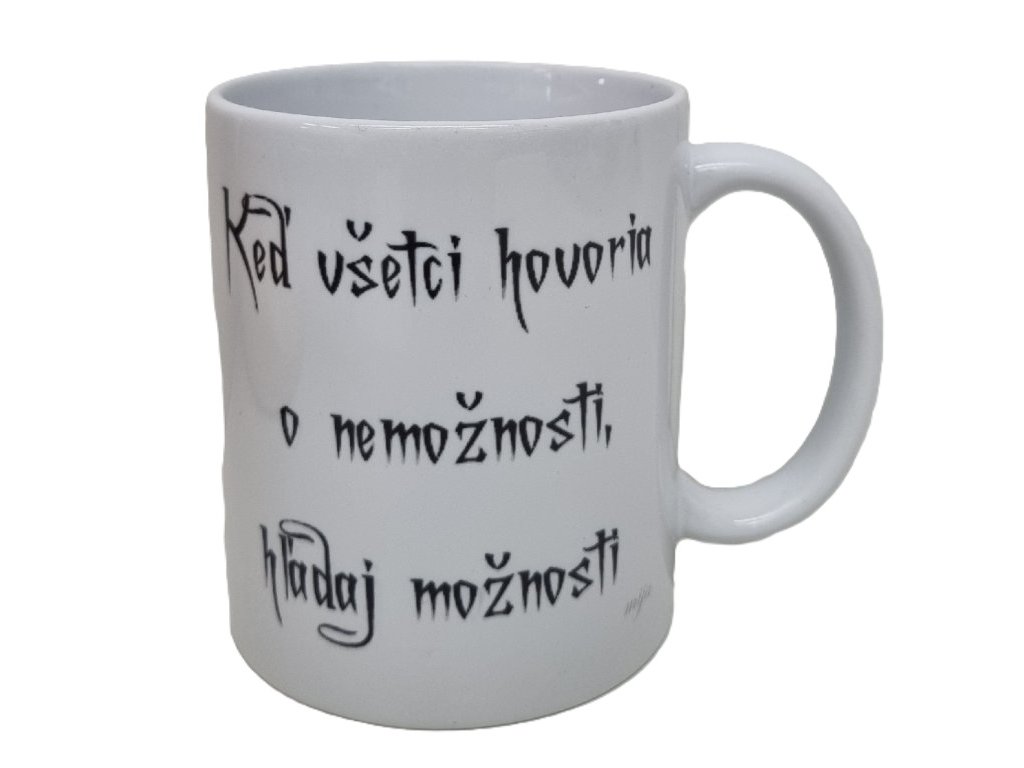 Hrnček keramický s potlačou "Keď všetci hovoria o nemožnosti, hľadaj možnosti"