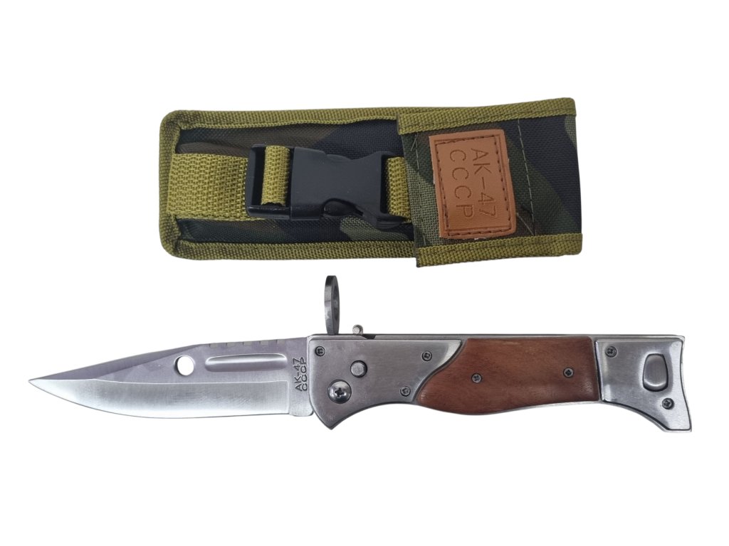 Vrecková vyskakovačka s nerezovou čepeľou a kombinovanou rukoväťou drevo/kov. Má poistku proti samovoľnému zatvoreniu. Súčasťou balenia je púzdro. Dĺžka noža je 22/10cm.